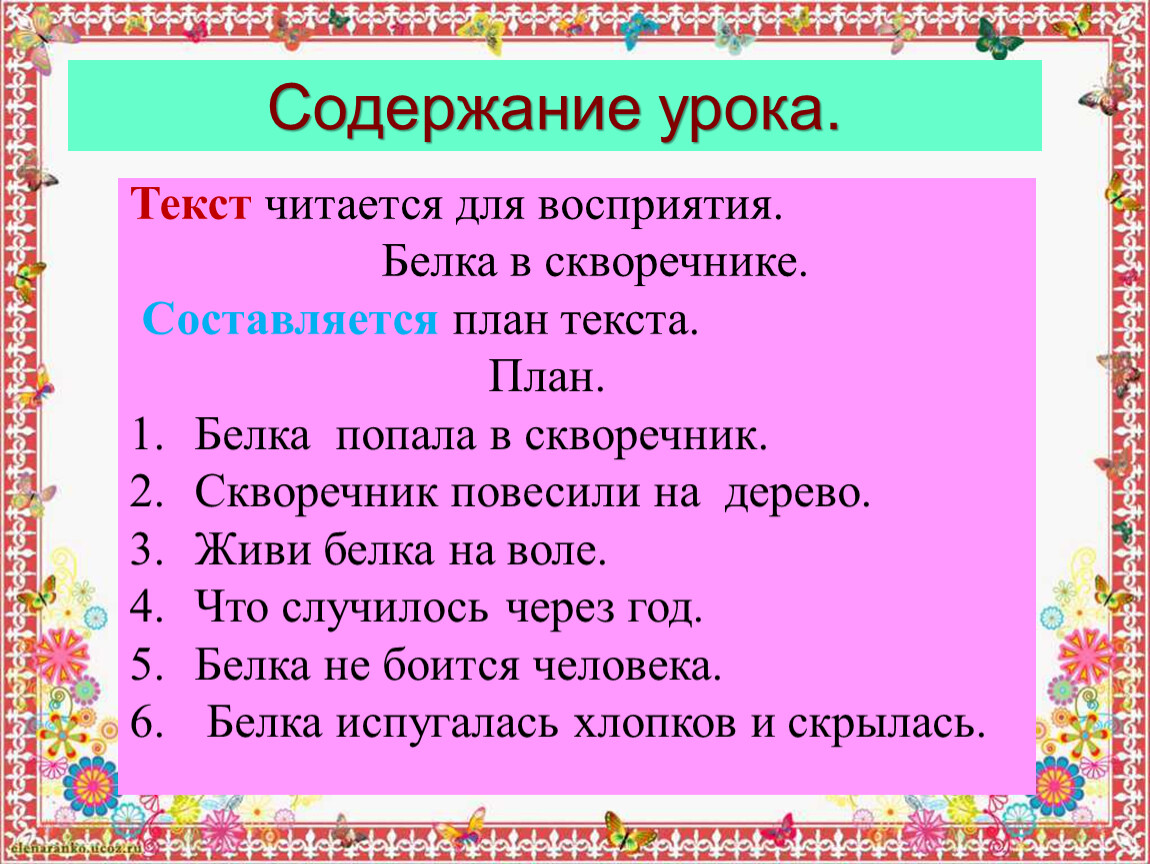 Содержание урока.
