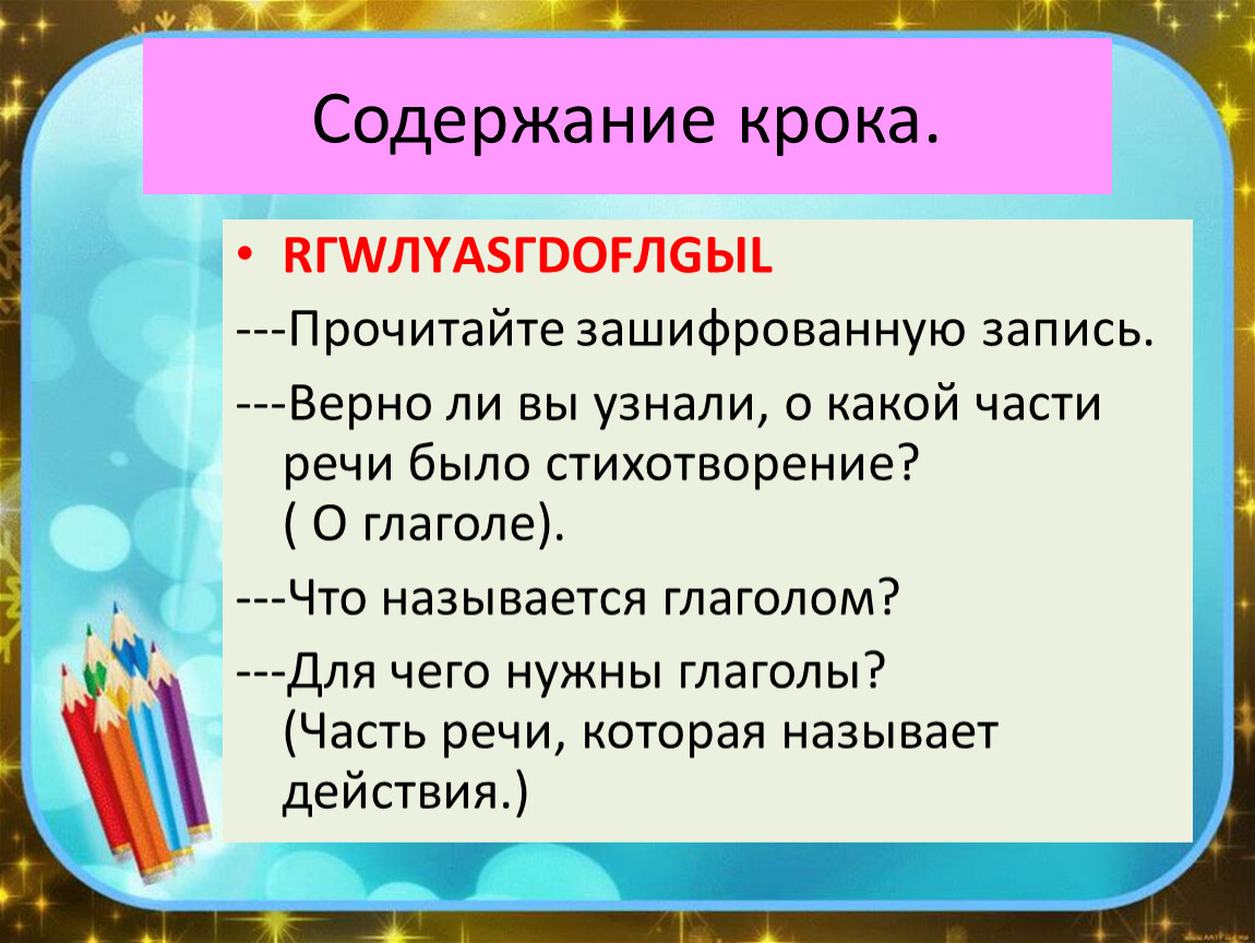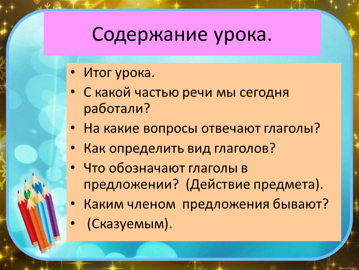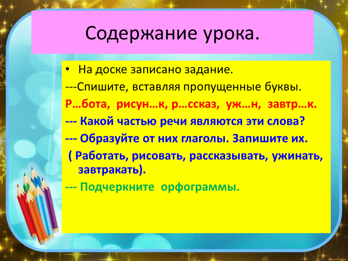 ( Работать, рисовать, рассказывать, ужинать, завтракать).