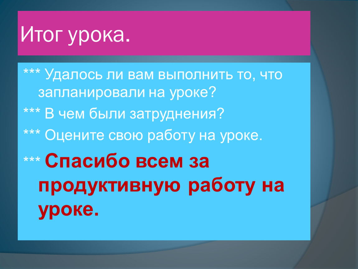 *** Удалось ли вам выполнить то, что запланировали на уроке?