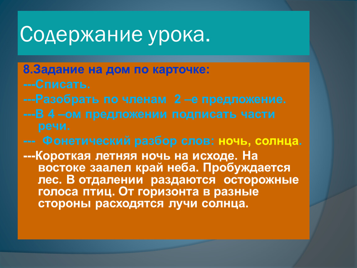 ---Короткая летняя ночь на исходе. На востоке заалел край неба. Пробуждается лес. В отдалении раздаются осторожные голоса птиц. От горизонта в разные стороны расходятся лучи солнца.