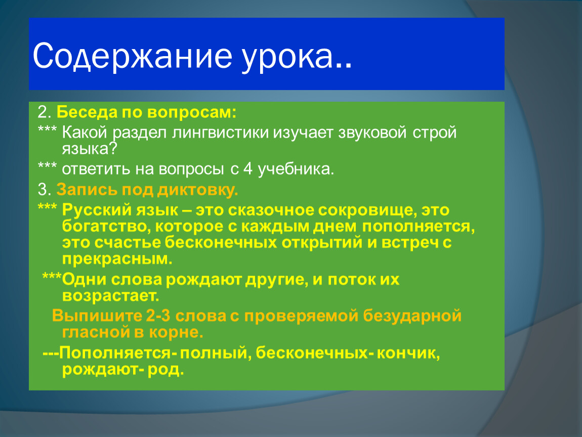 *** Какой раздел лингвистики изучает звуковой строй языка?