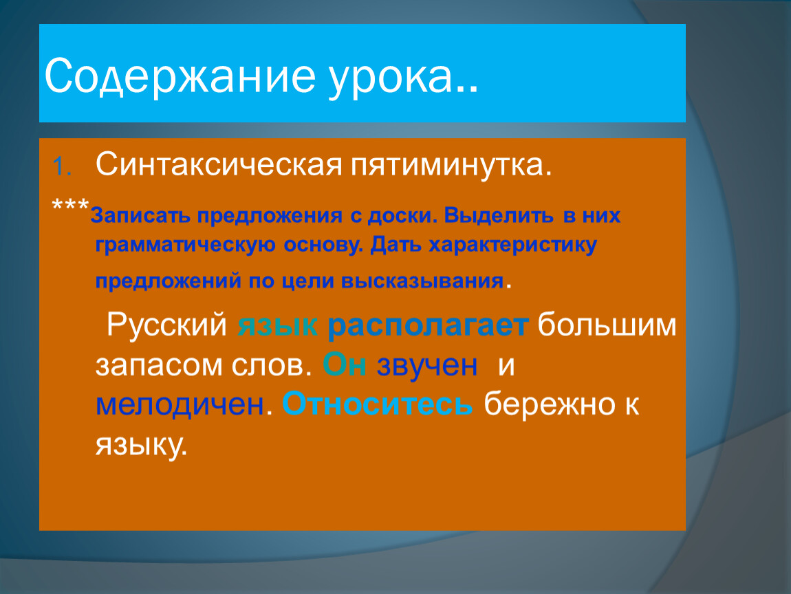 Русский язык располагает большим запасом слов. Он звучен и мелодичен. Относитесь бережно к языку.