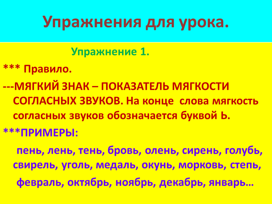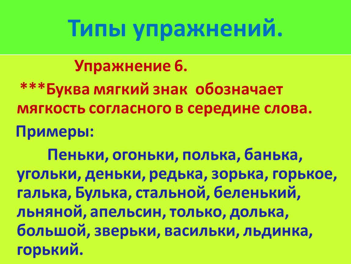 ***Буква мягкий знак обозначает мягкость согласного в середине слова.