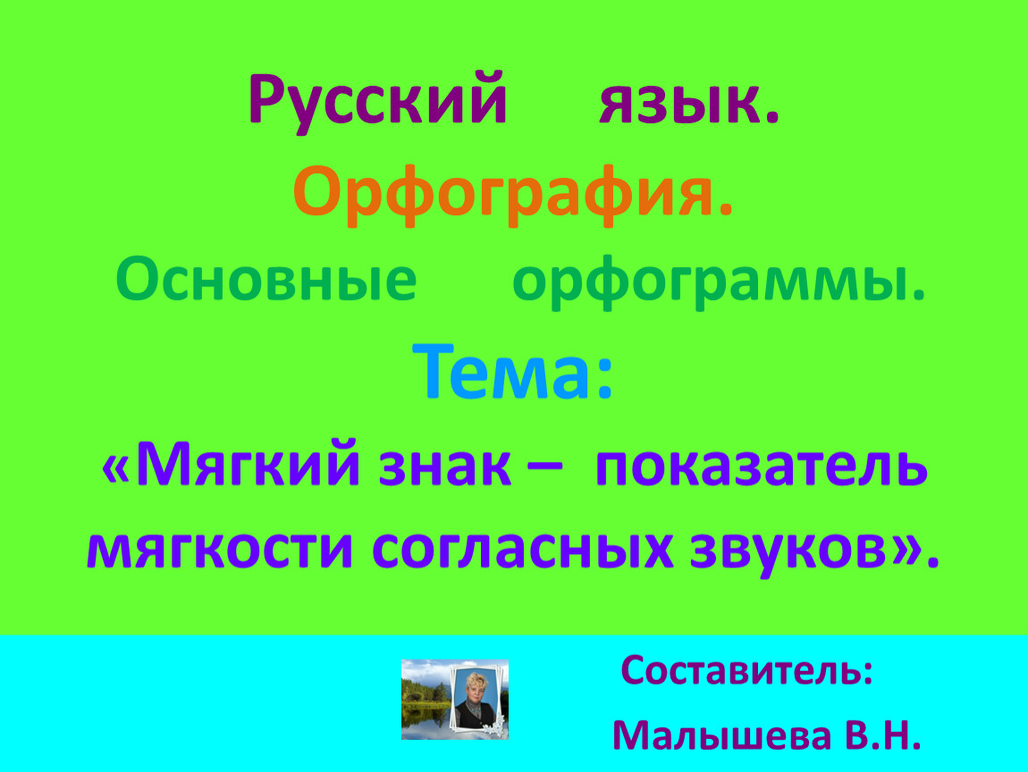 Русский язык.Орфография. Основные орфограммы.Тема: «Мягкий знак – показатель мягкости согласных звуков».