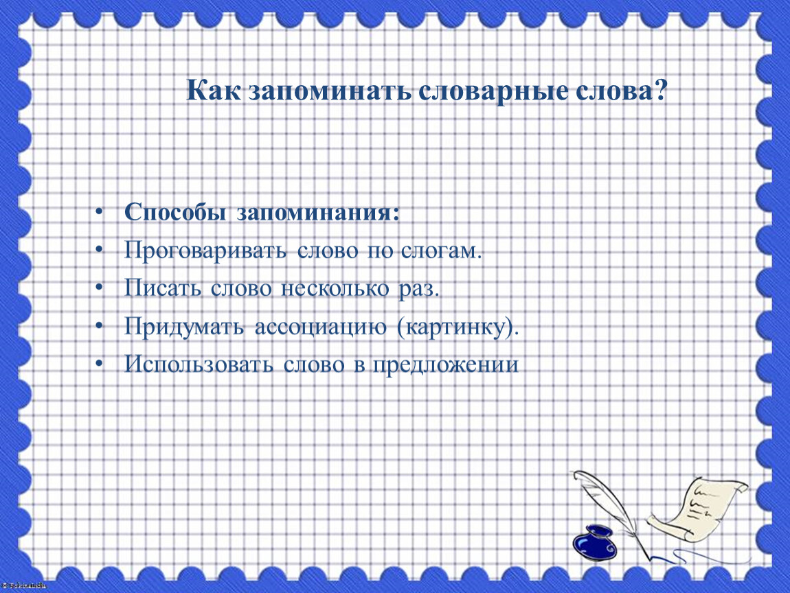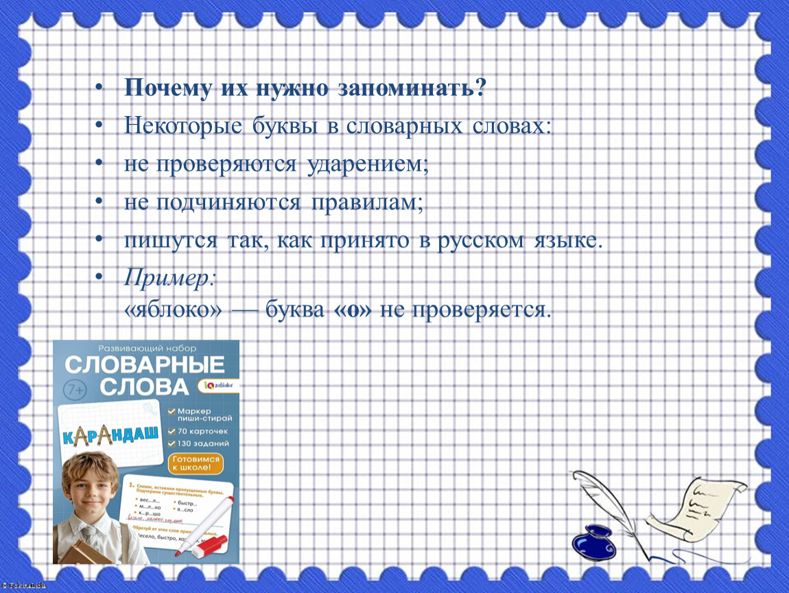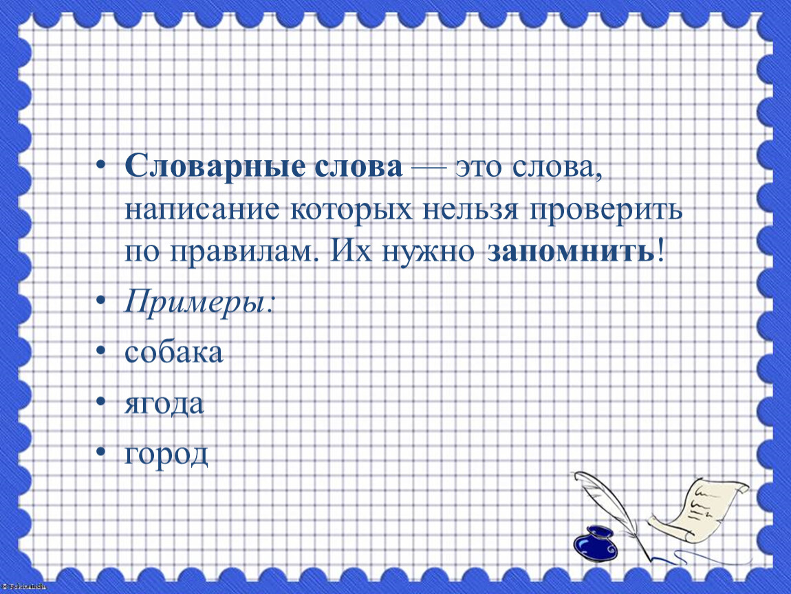 Словарные слова — это слова, написание которых нельзя проверить по правилам. Их нужно запомнить!