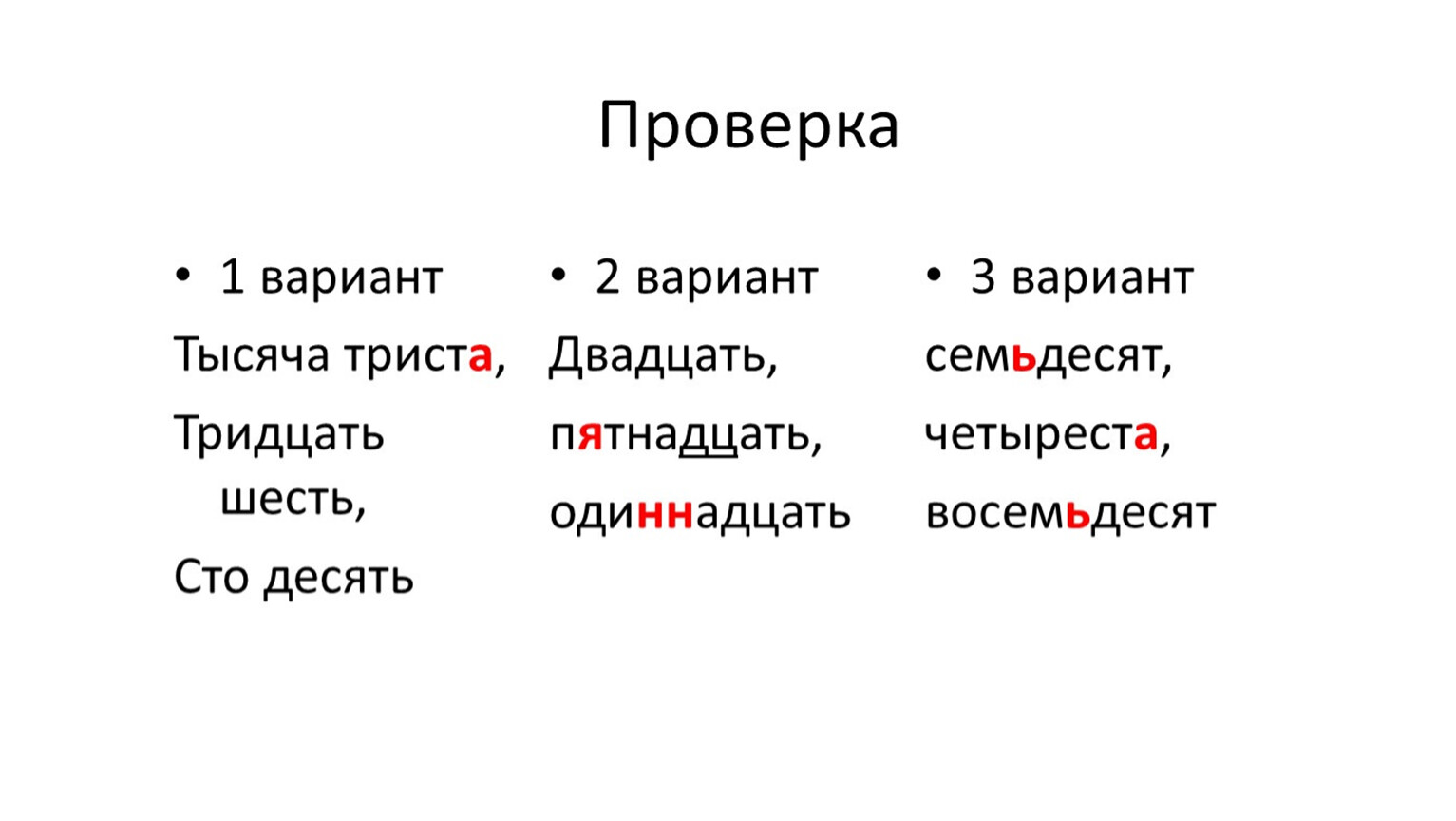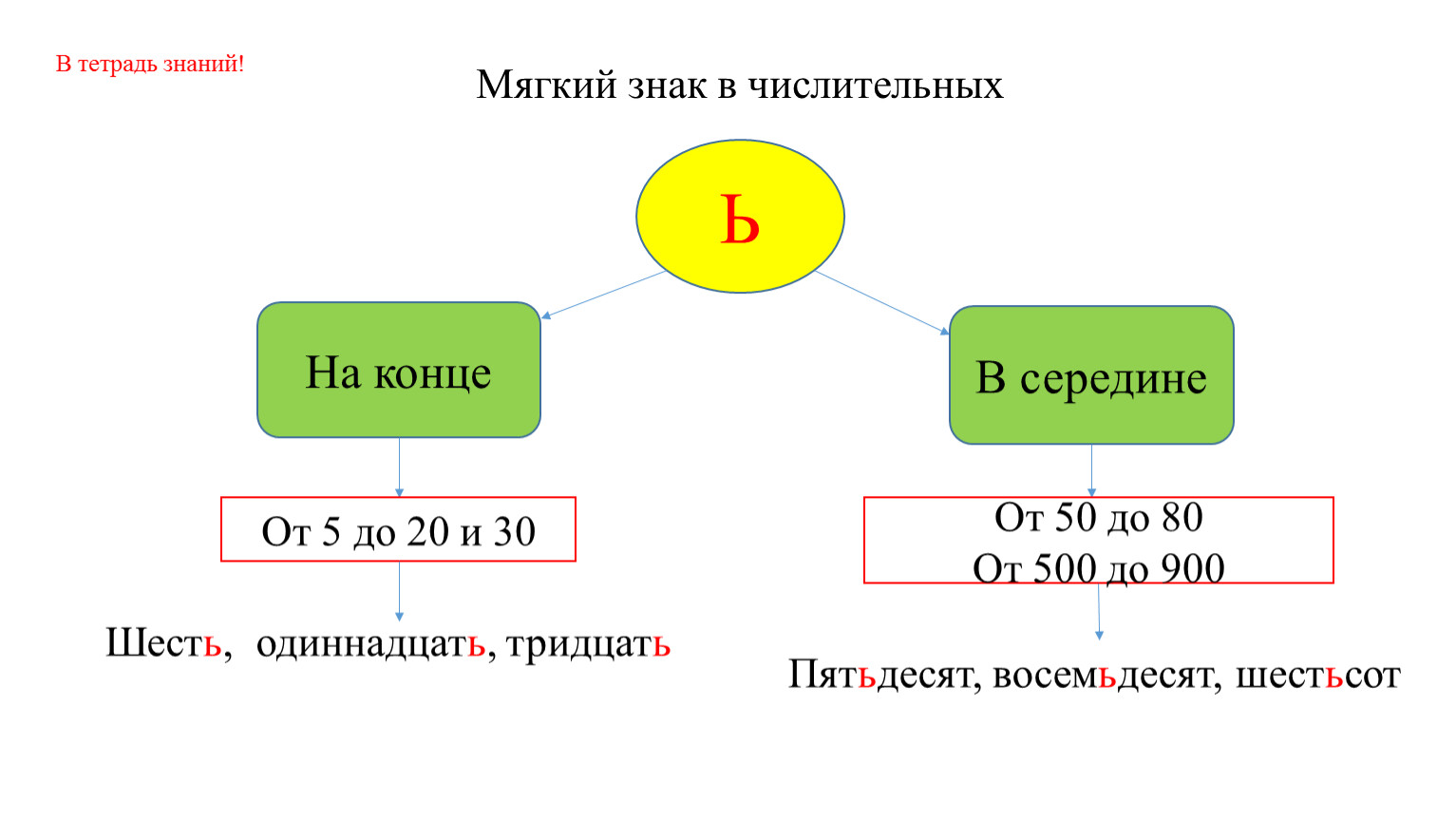 Помним, что у количественных числительных такое же окончание, как у сущ. 3 скл.