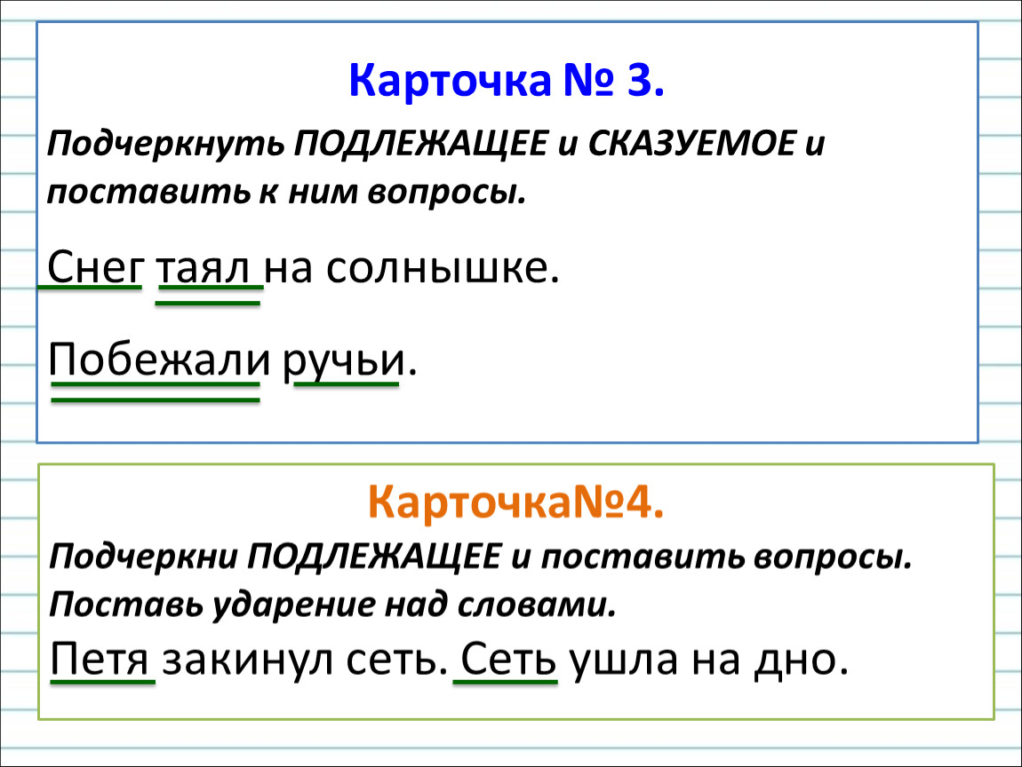 Подчеркни ПОДЛЕЖАЩЕЕ и поставить вопросы. Поставь ударение над словами.