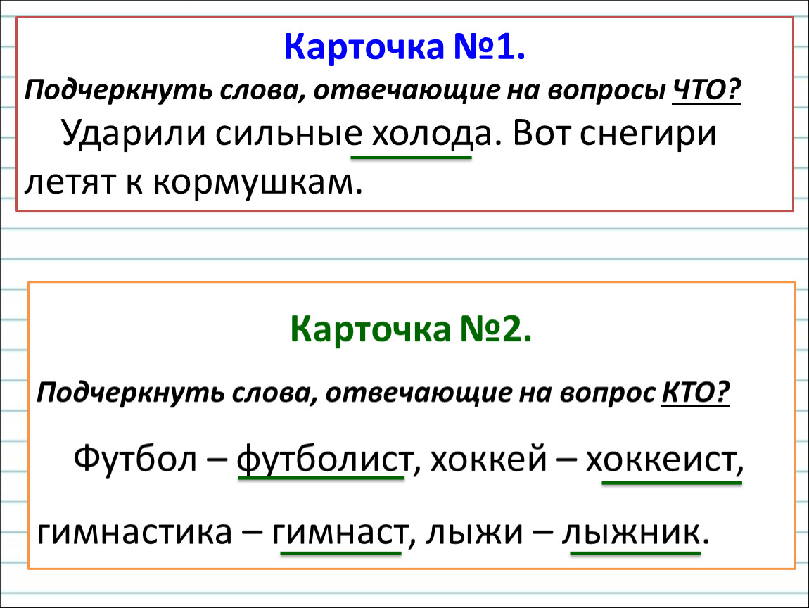 Подчеркнуть слова, отвечающие на вопросы ЧТО?