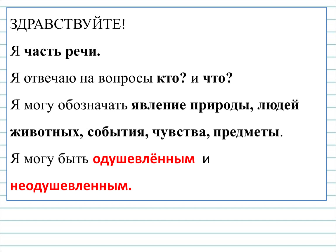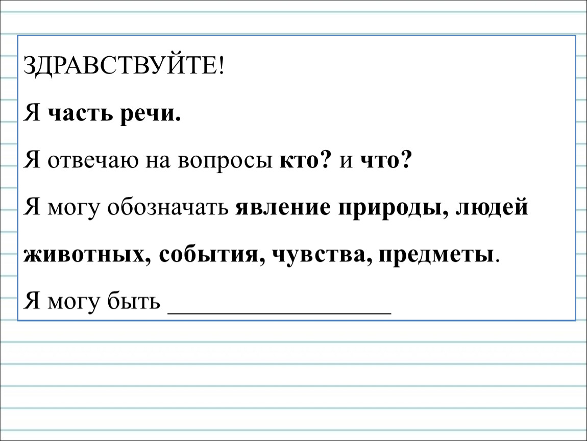 Я могу обозначать явление природы, людей животных, события, чувства, предметы.