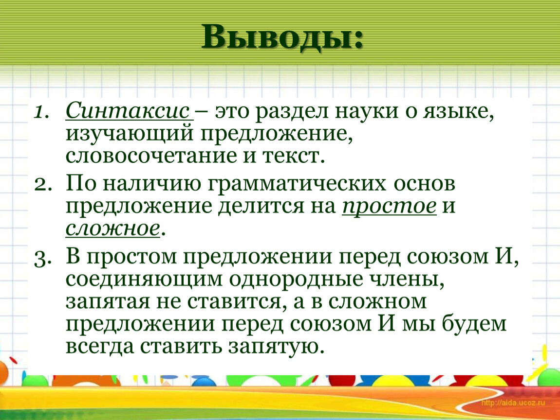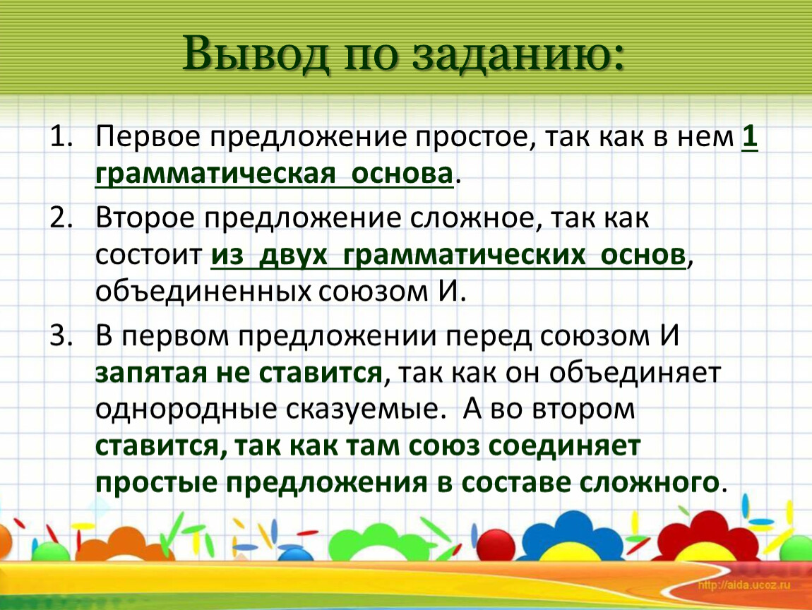 Простые и сложные предложения