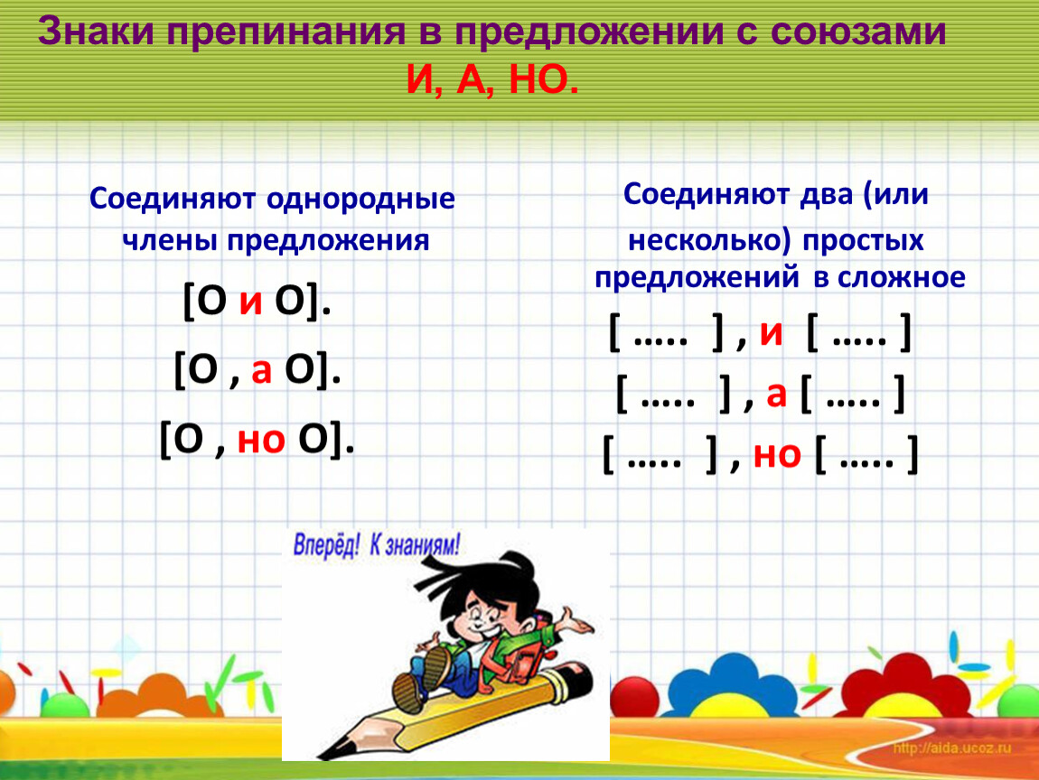 Знаки препинания в предложении с союзами И, А, НО.