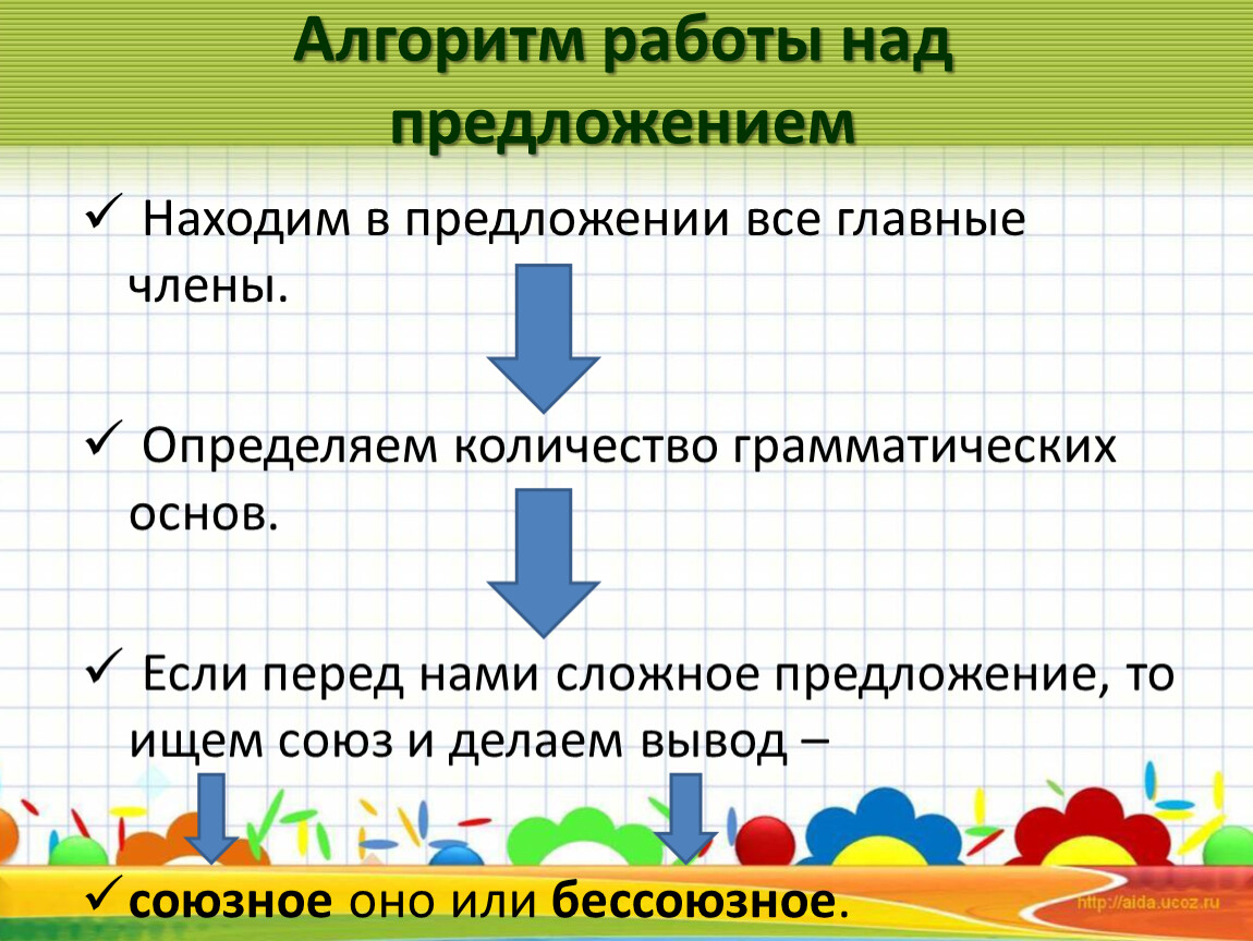 Алгоритм работы над предложением