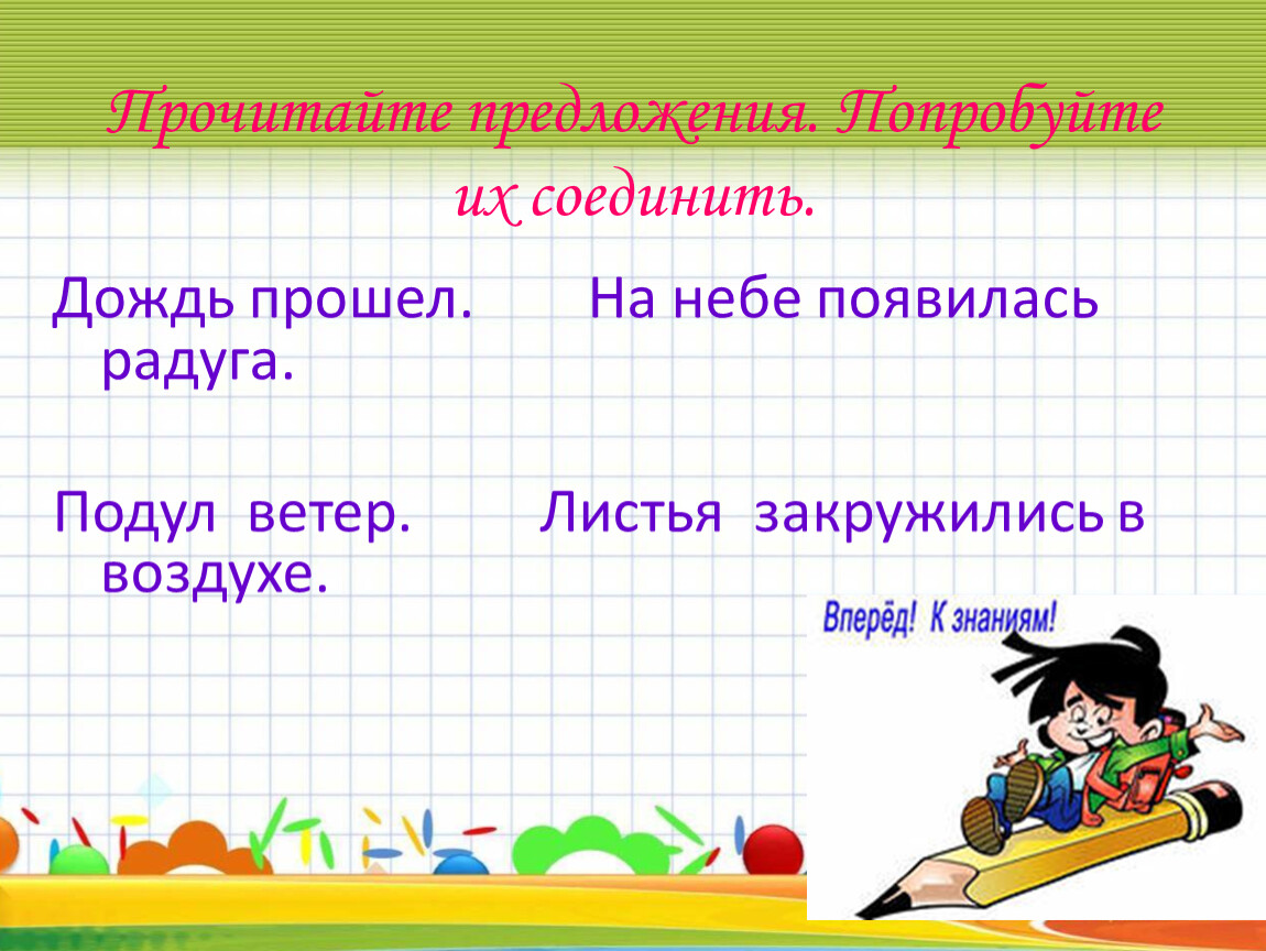 Прочитайте предложения. Попробуйте их соединить.