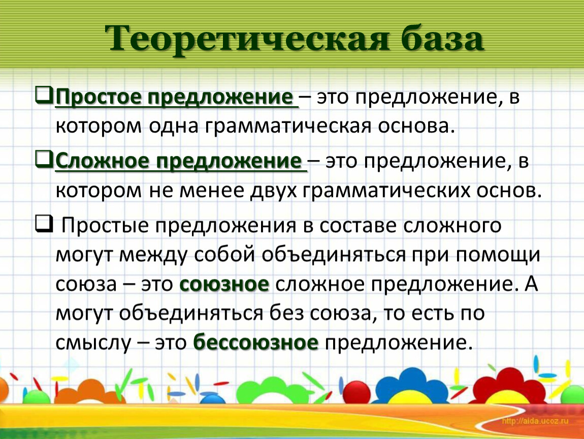 3. Простые предложения в составе сложного, их грамматические основы.