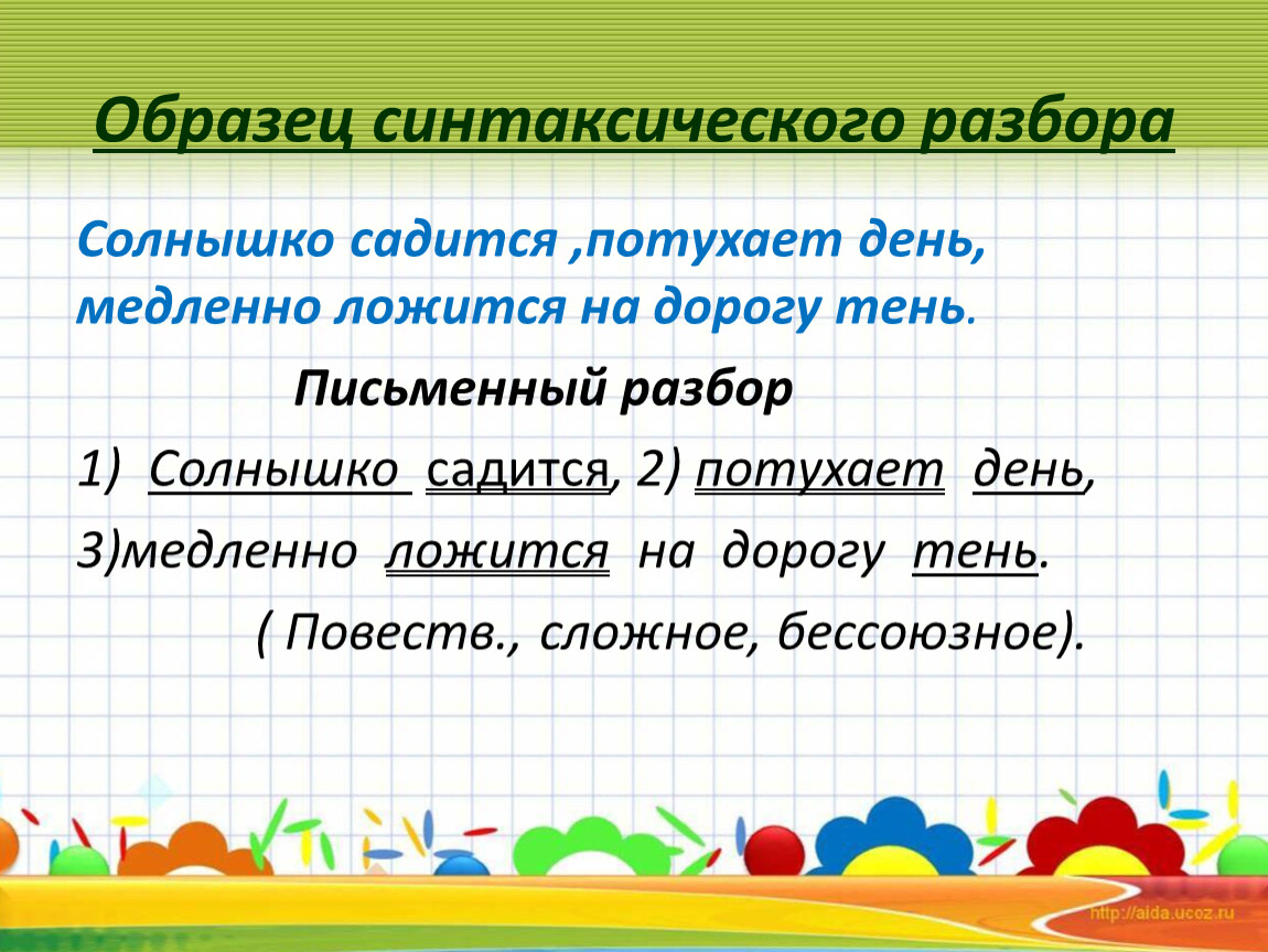 Образец синтаксического разбора