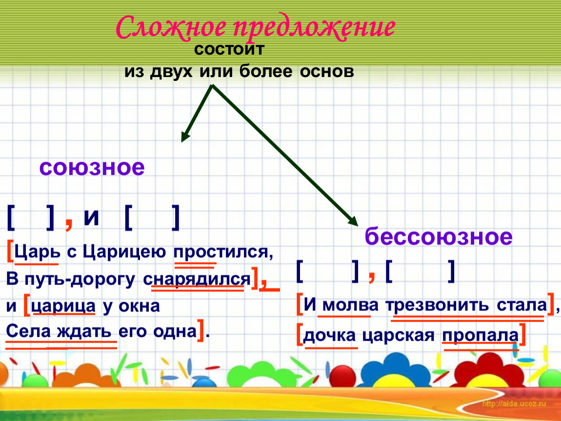 Сложное предложение – это предложение, в котором не менее двух грамматических основ.