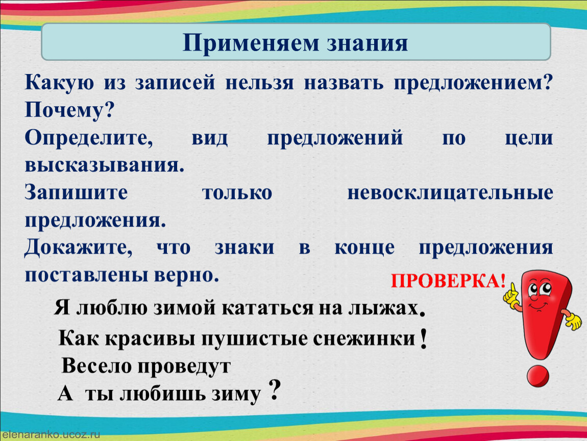 Запишите только невосклицательные предложения.