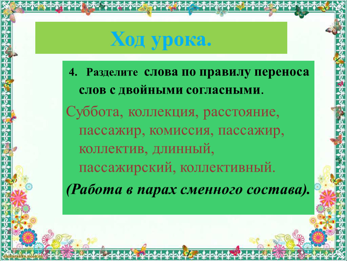 4. Разделите слова по правилу переноса слов с двойными согласными.