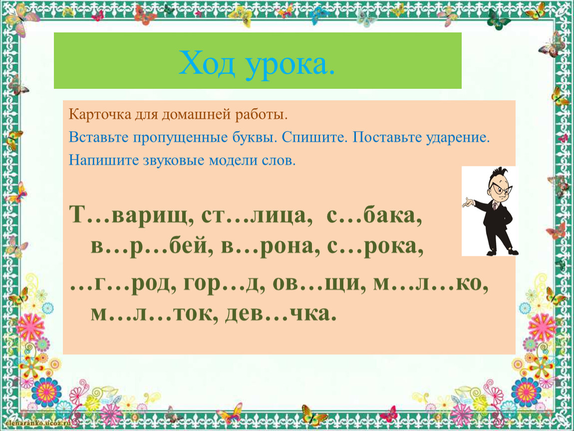…г…род, гор…д, ов…щи, м…л…ко, м…л…ток, дев…чка.