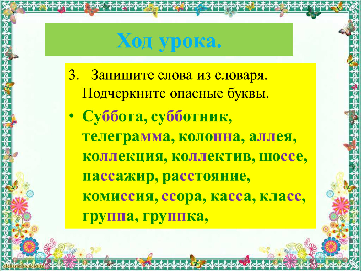 3. Запишите слова из словаря. Подчеркните опасные буквы.