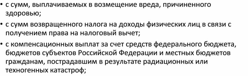 • Денежные суммы выплачиваемые в качестве компенсации вреда, причиненного здоровью