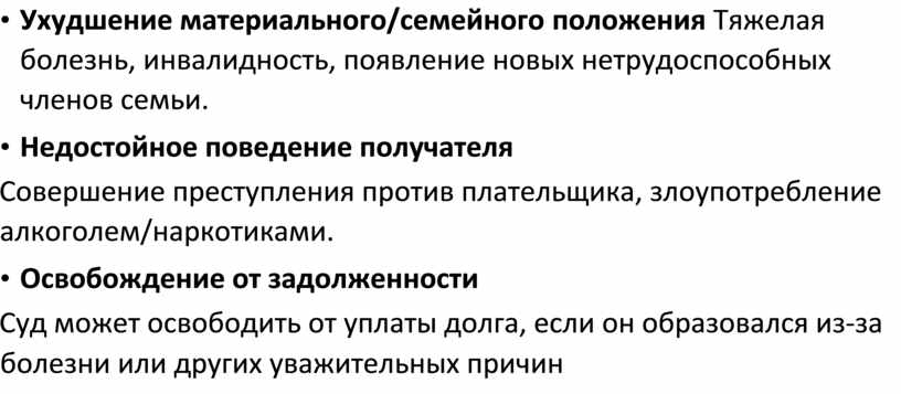 • Ухудшение материального/семейного положения Тяжелая болезнь, инвалидность, появление новых нетрудоспособных членов семьи.