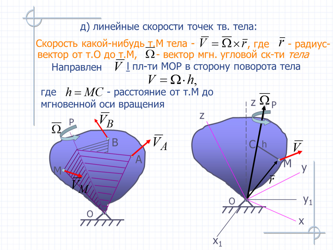 д) линейные скорости точек тв. тела: