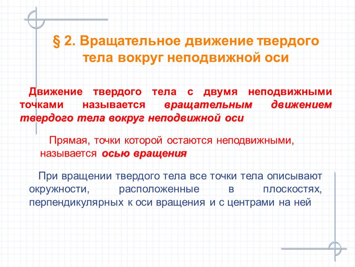 § 2. Вращательное движение твердого тела вокруг неподвижной оси