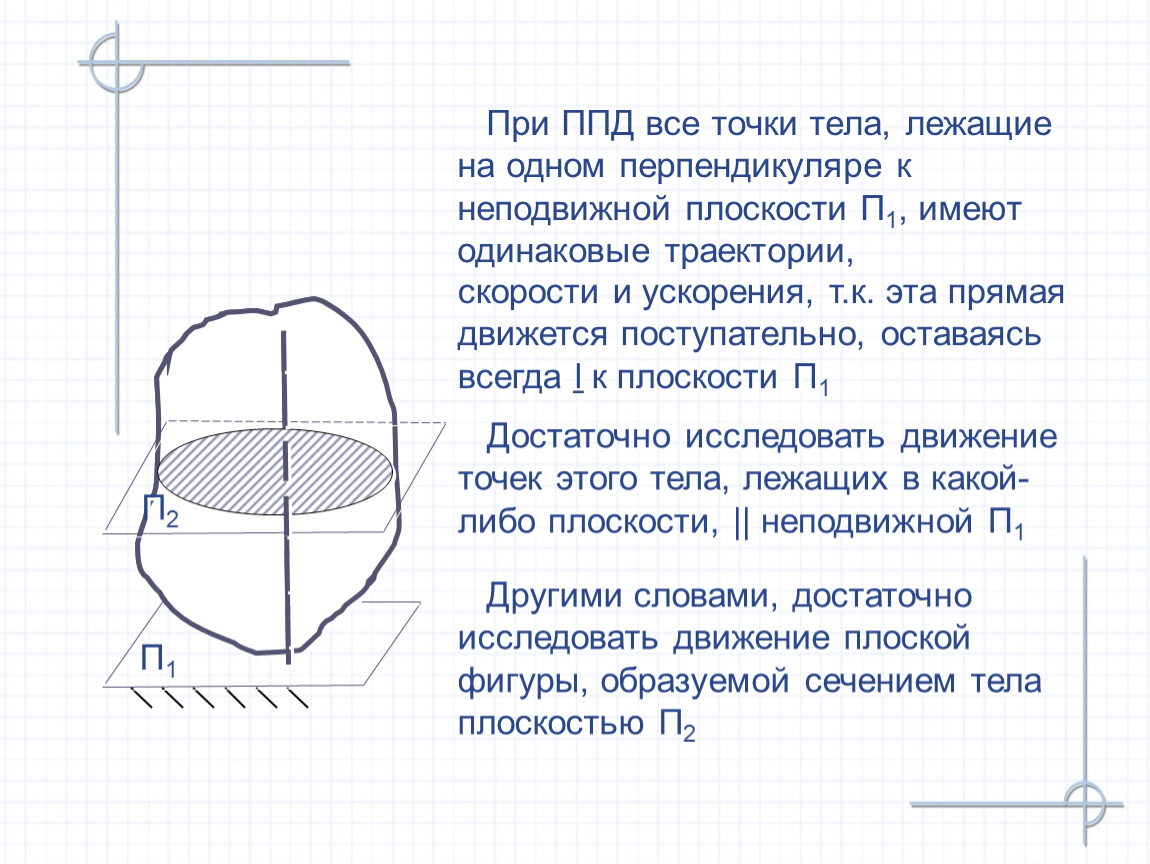 Другими словами, достаточно исследовать движение плоской фигуры, образуемой сечением тела плоскостью П2
