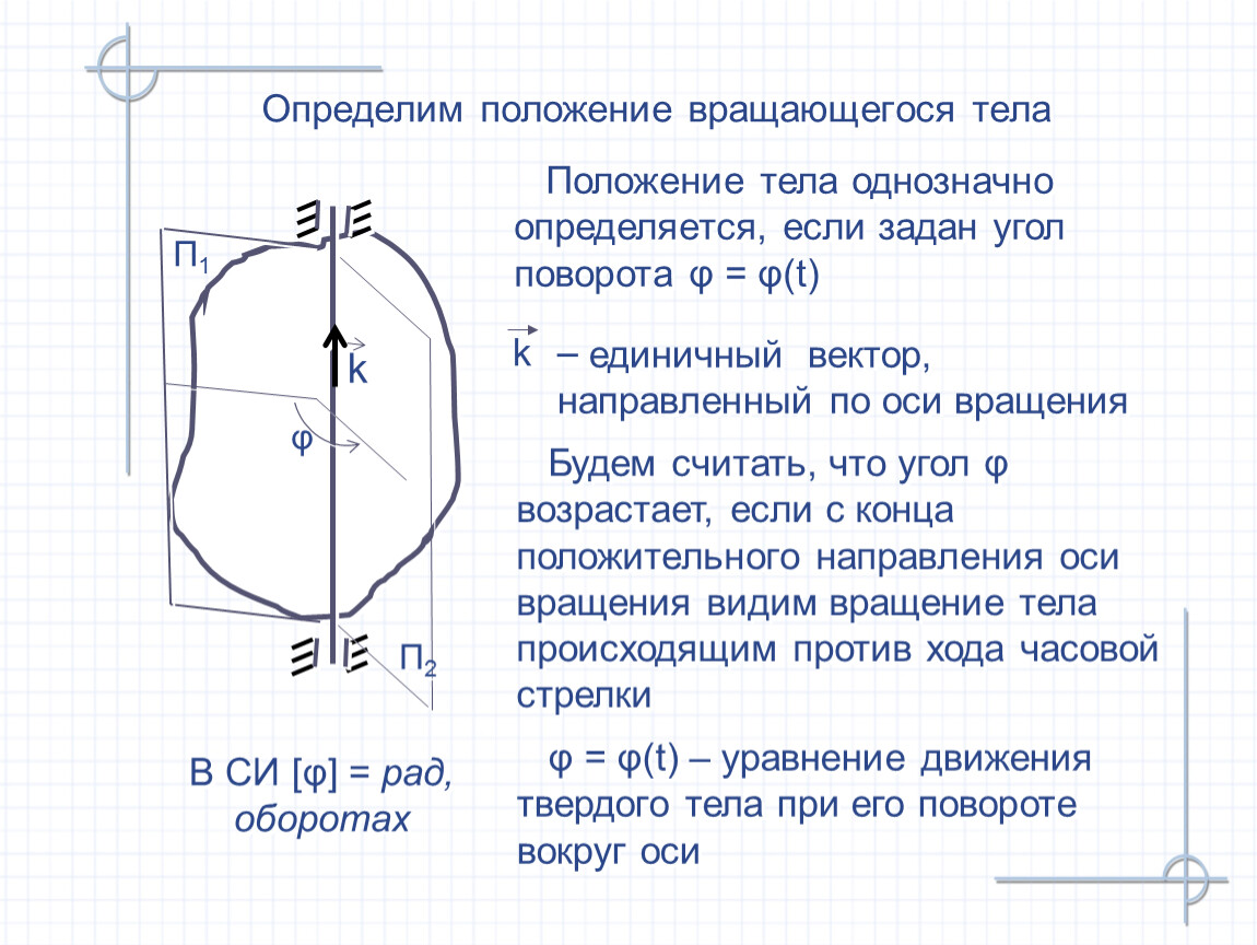 Определим положение вращающегося тела