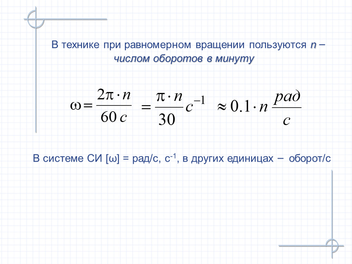 В технике при равномерном вращении пользуются n – числом оборотов в минуту