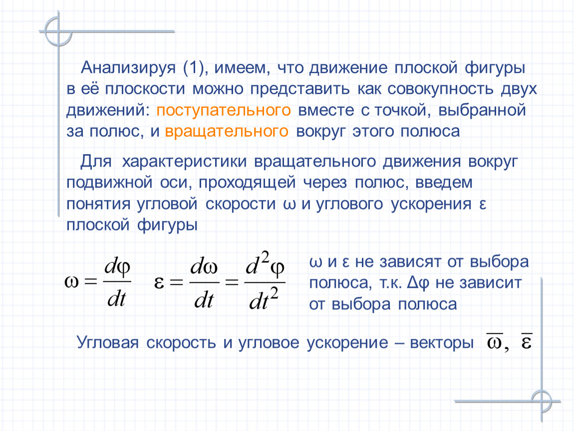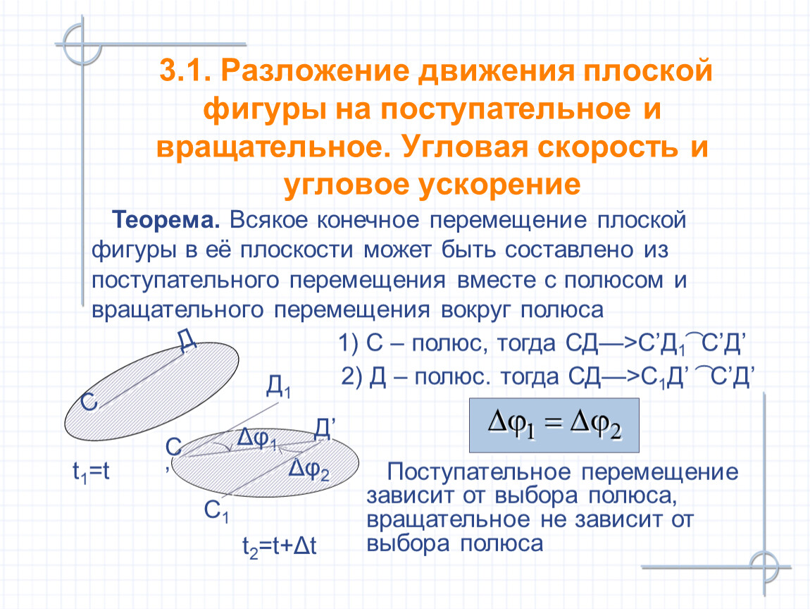 3.1. Разложение движения плоской фигуры на поступательное и вращательное. Угловая скорость и угловое ускорение