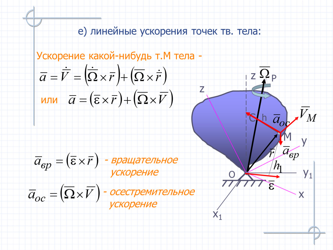 е) линейные ускорения точек тв. тела: