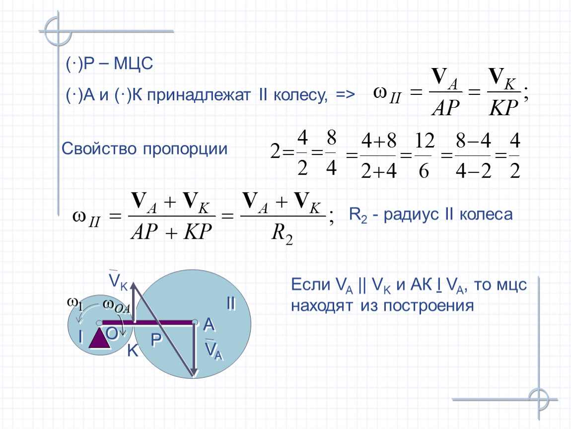 Мгновенный центр скоростей (мцс) – это такая точка плоской фигуры, скорость которой в данный момент времени равна нулю.