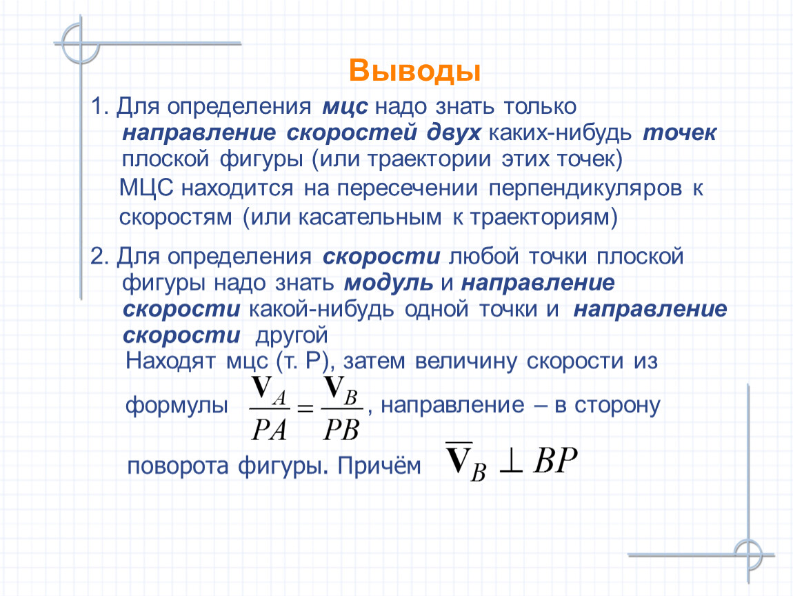 1. Для определения мцс надо знать только направление скоростей двух каких-нибудь точек плоской фигуры (или траектории этих точек)