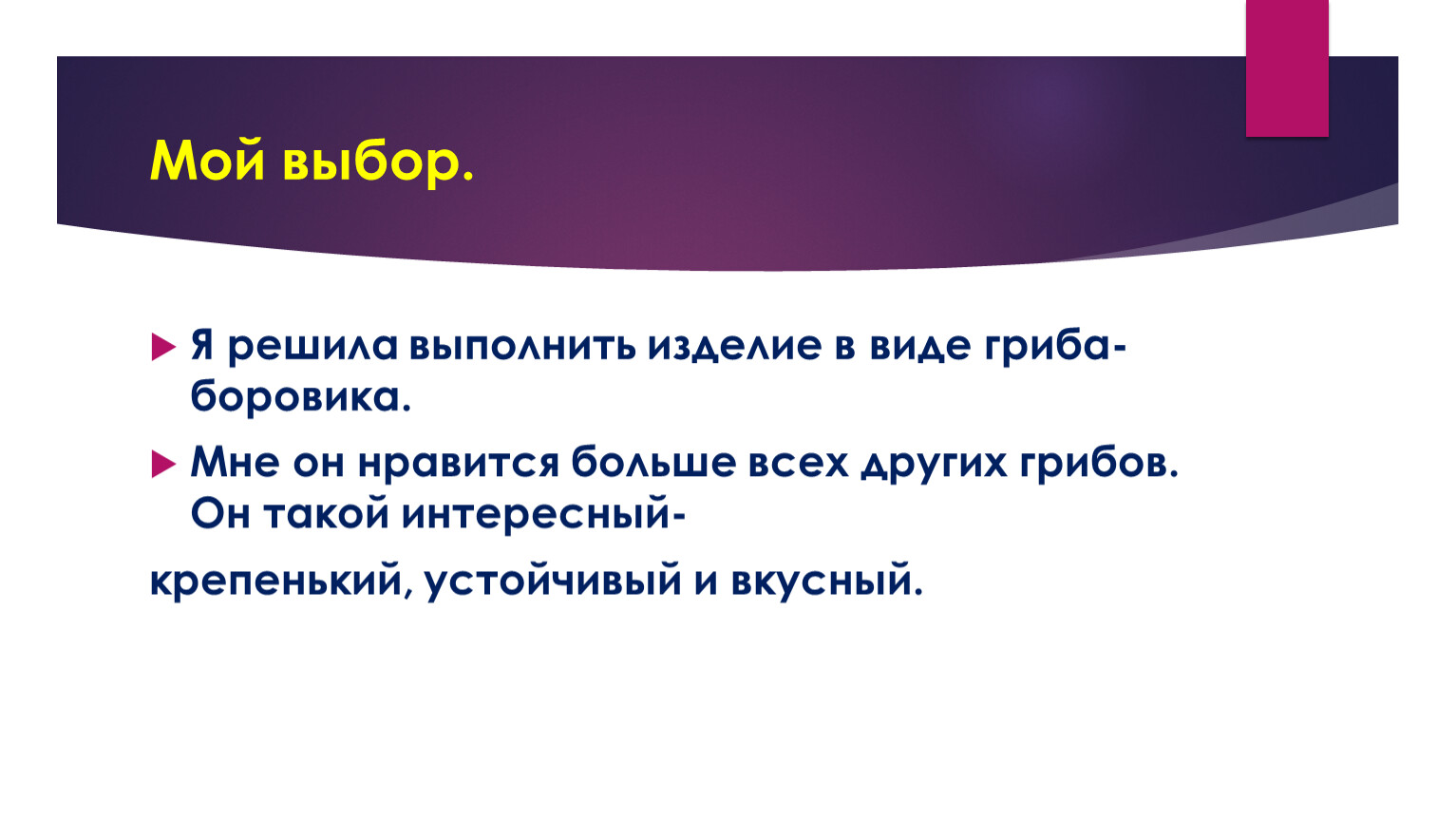 Мне он нравится больше всех других грибов. Он такой интересный-