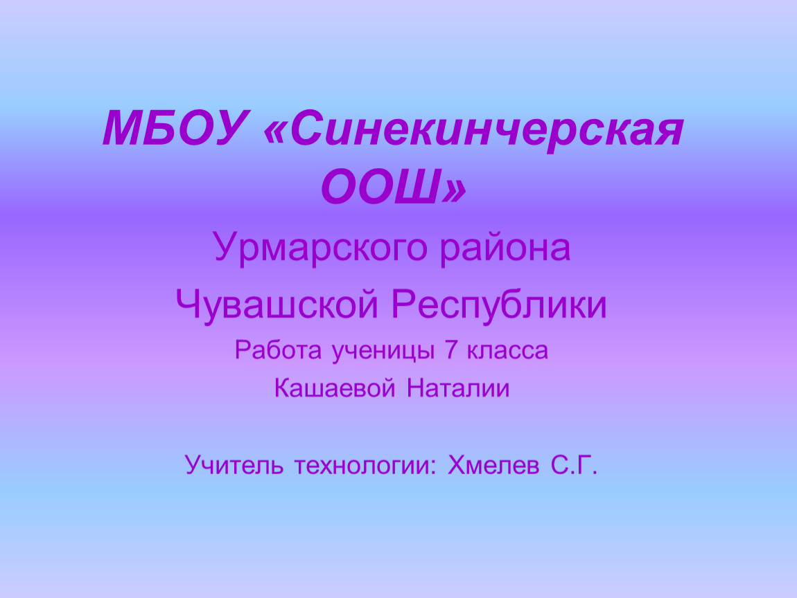Учитель технологии: Хмелев С.Г.