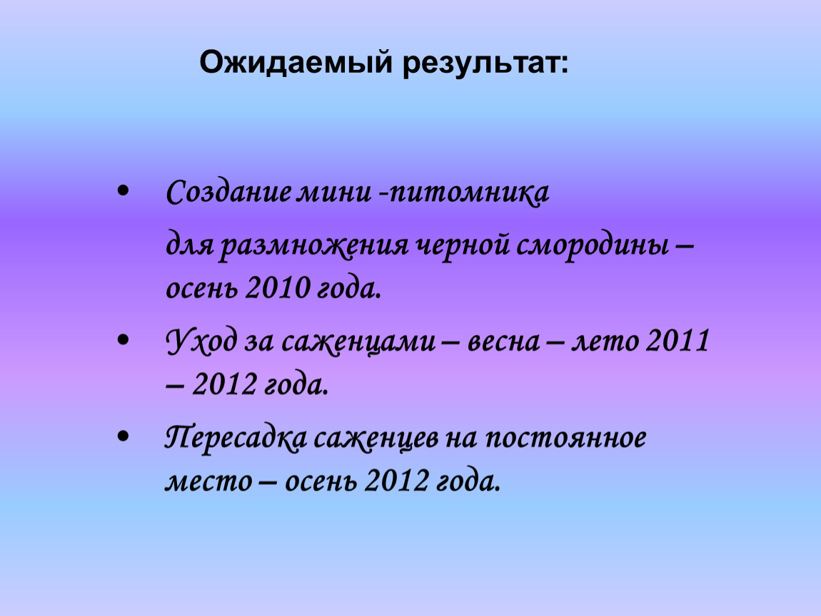 для размножения черной смородины – осень 2010 года.