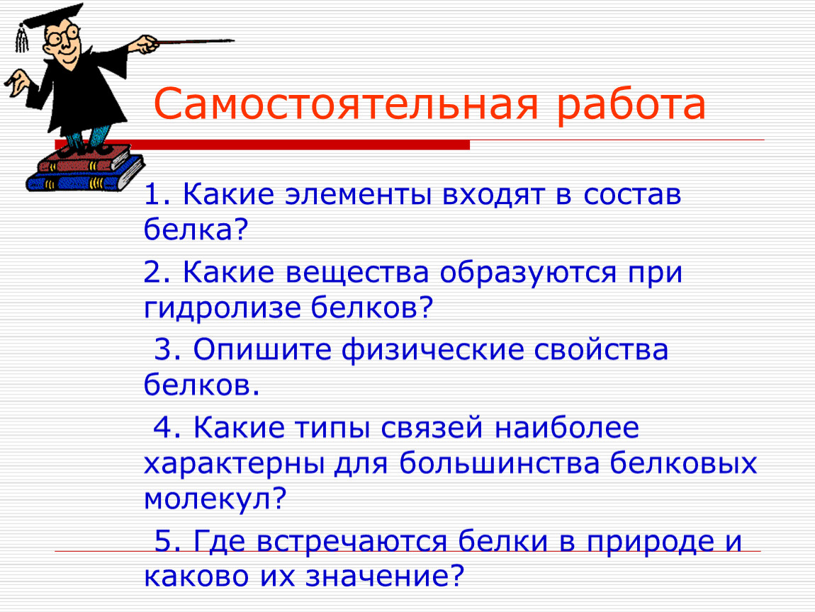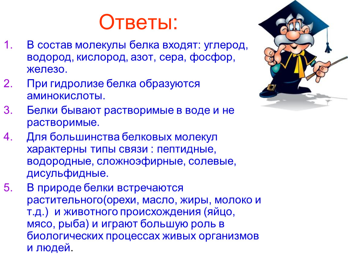1. Какие элементы входят в состав белка?