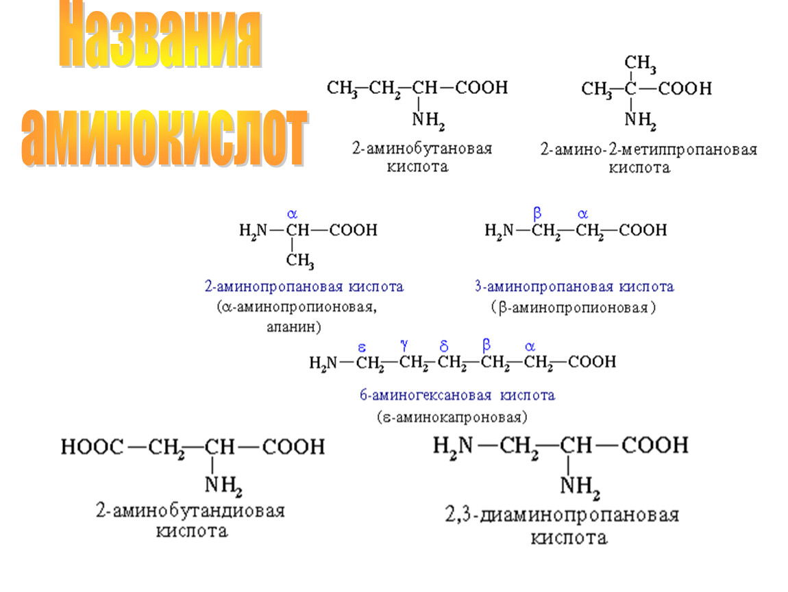 Аминокислоты – это органические соединения, содержащие две функциональные группы – аминогруппу -NH2 и карбоксильную группу -COOH.