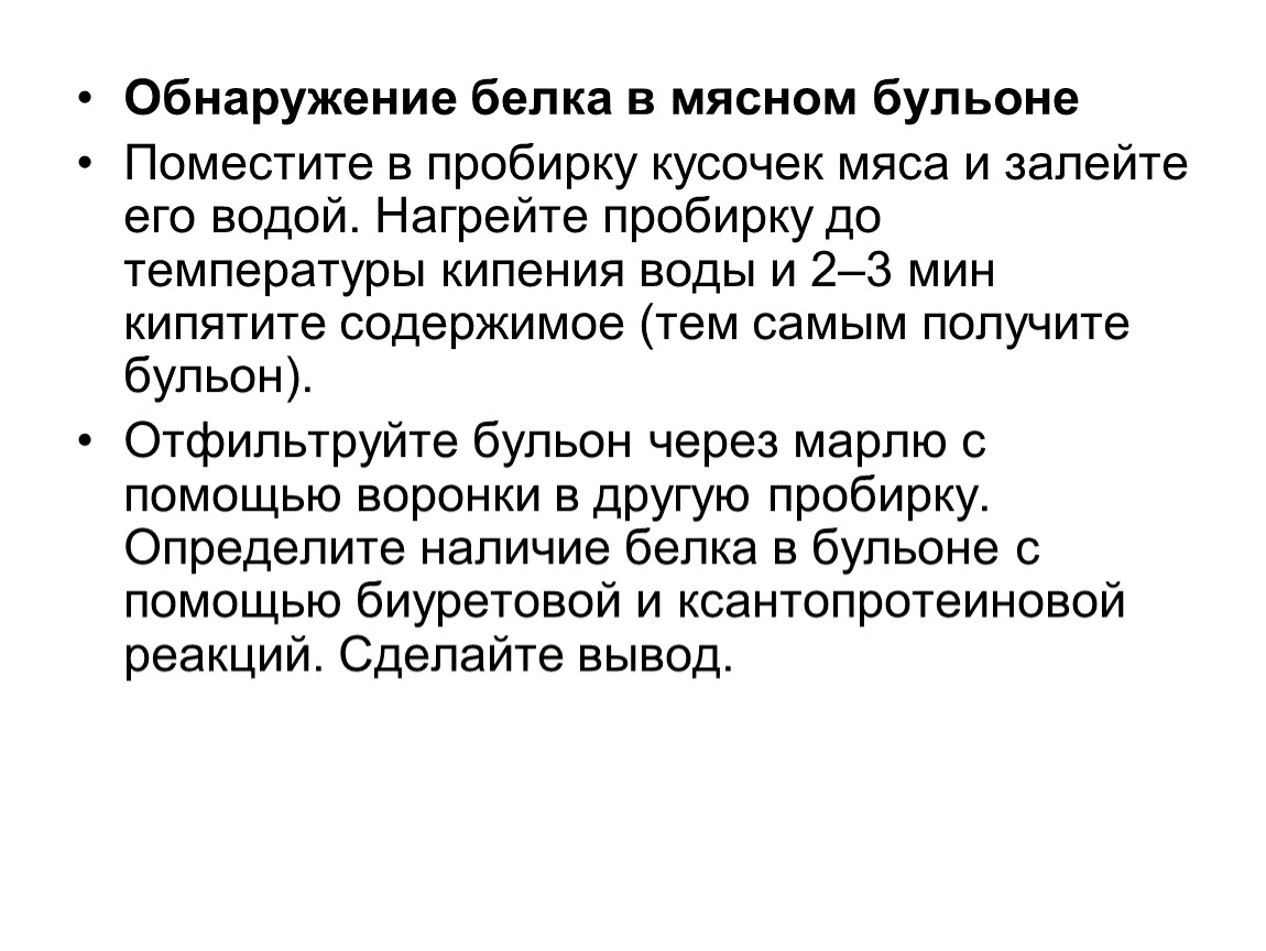 Обнаружение белка в мясном бульоне