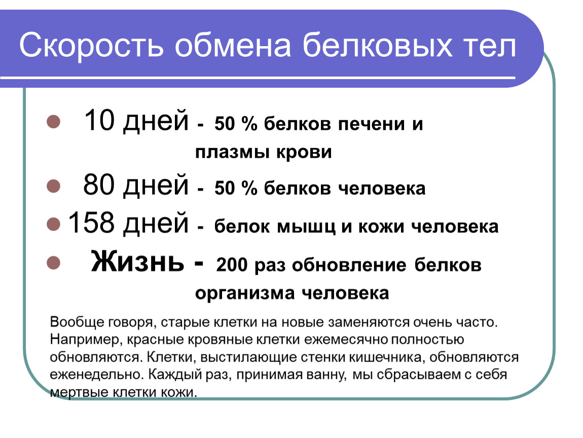 Скорость обмена белковых тел