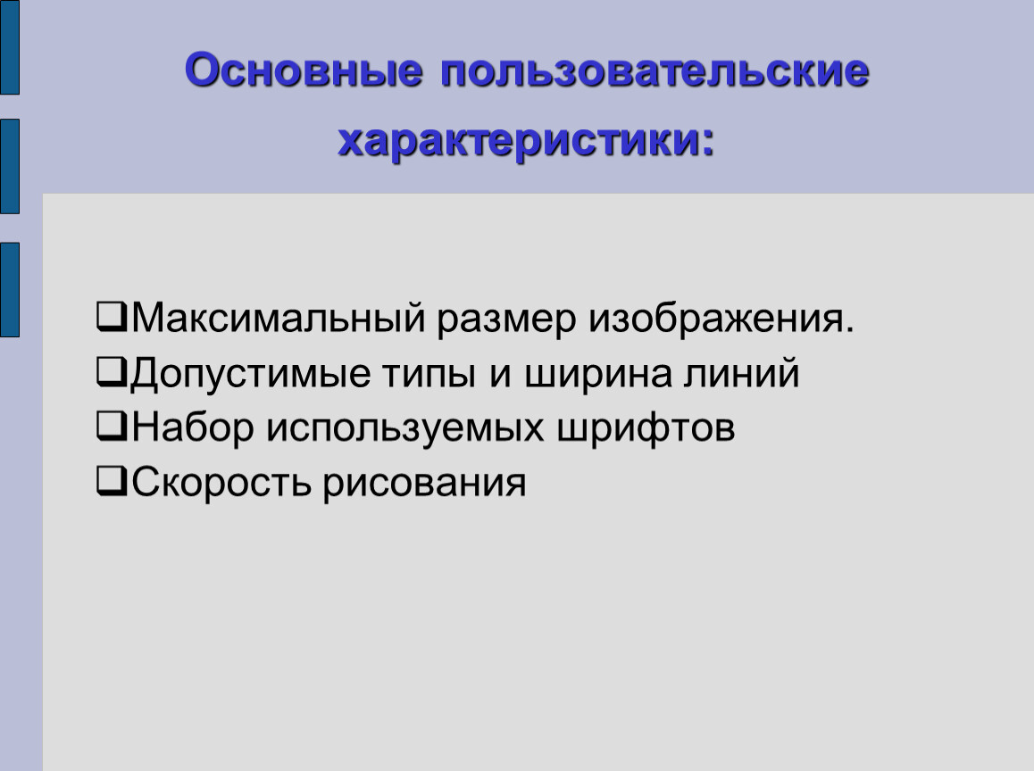 Основные пользовательские характеристики: