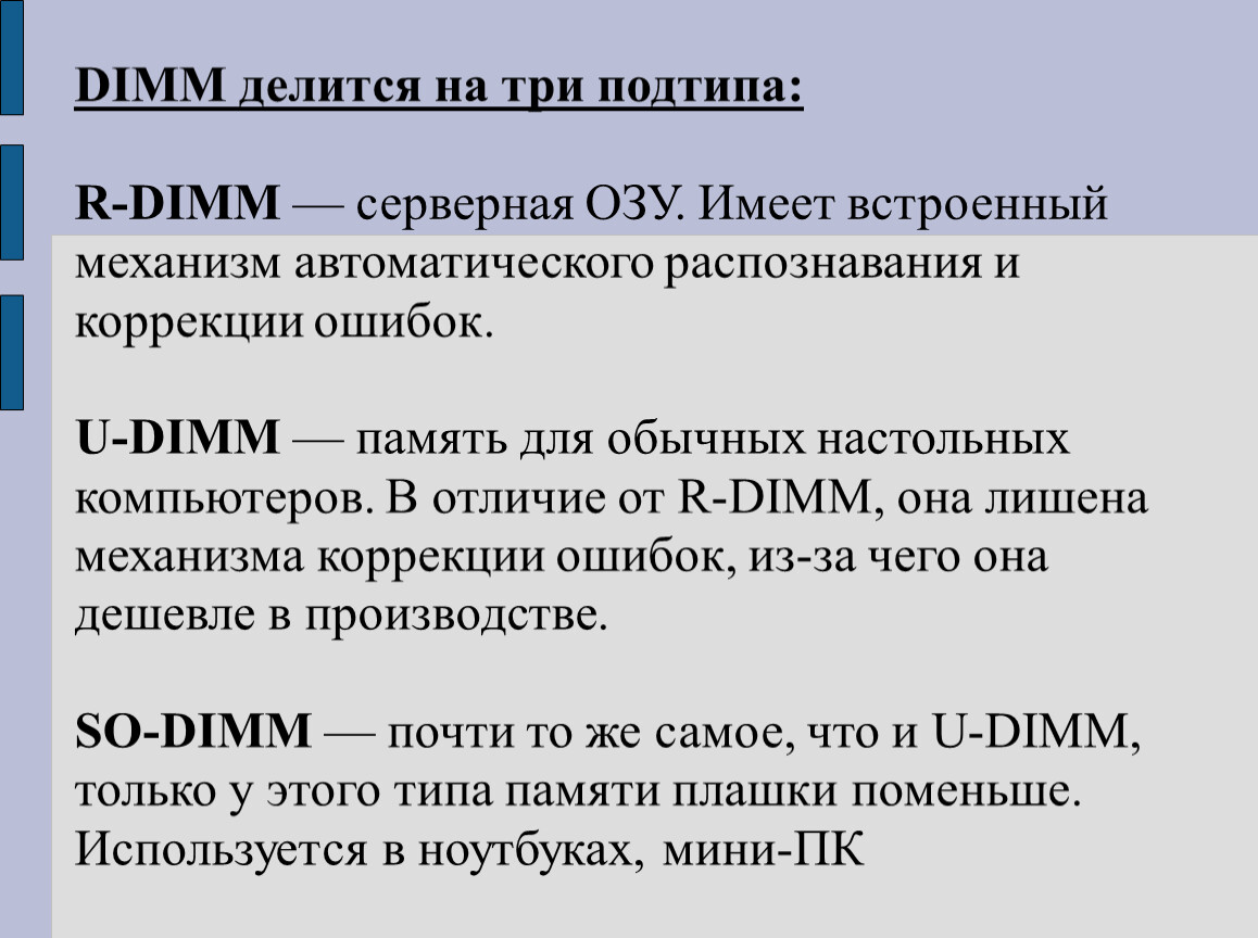 DIMM делится на три подтипа: