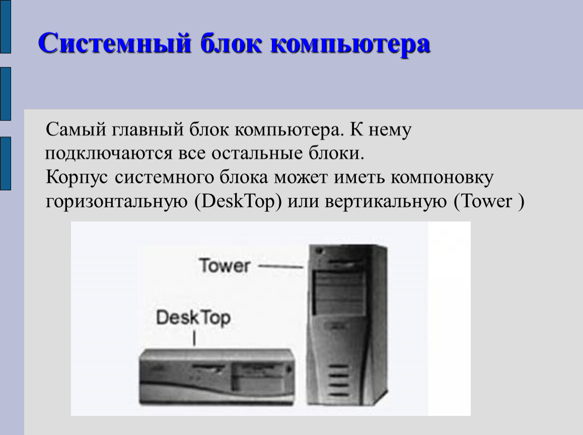 Корпус системного блока может иметь компоновку