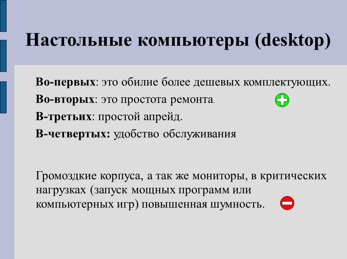 Громоздкие корпуса, а так же мониторы, в критических нагрузках (запуск мощных программ или компьютерных игр) повышенная шумность.