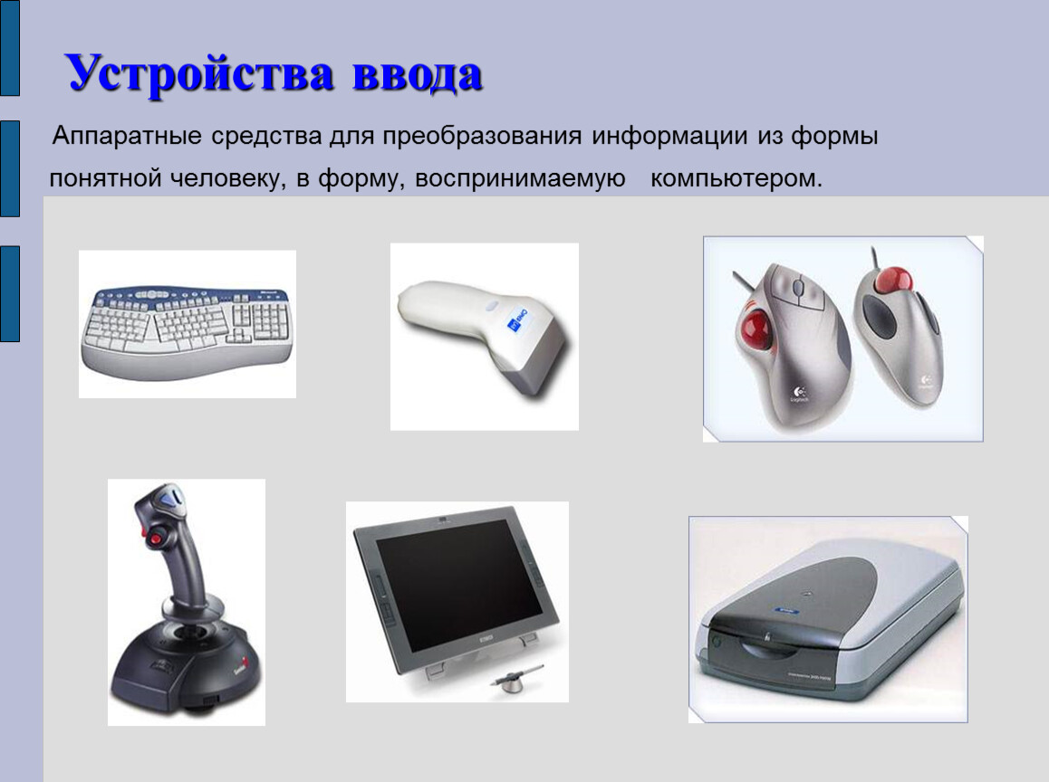 Это аппаратные средства для преобразования компьютерного представления информации в форму, понятную человеку.