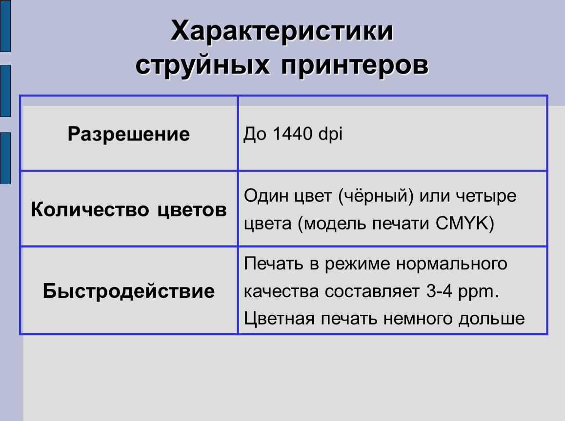 Характеристики струйных принтеров