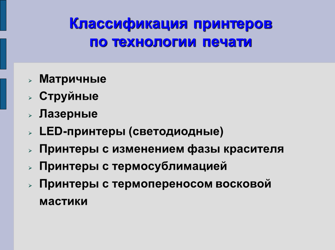 Классификация принтеров по технологии печати