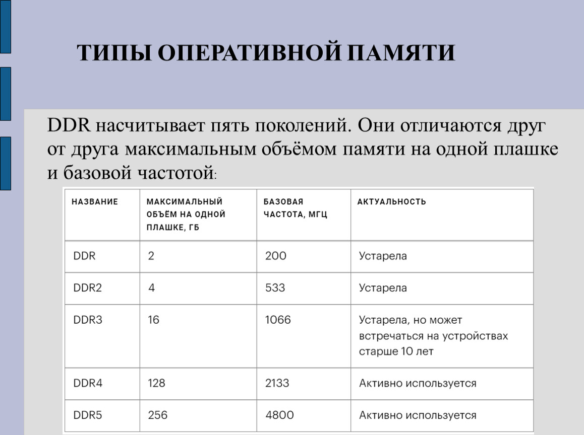 ТИПЫ ОПЕРАТИВНОЙ ПАМЯТИ